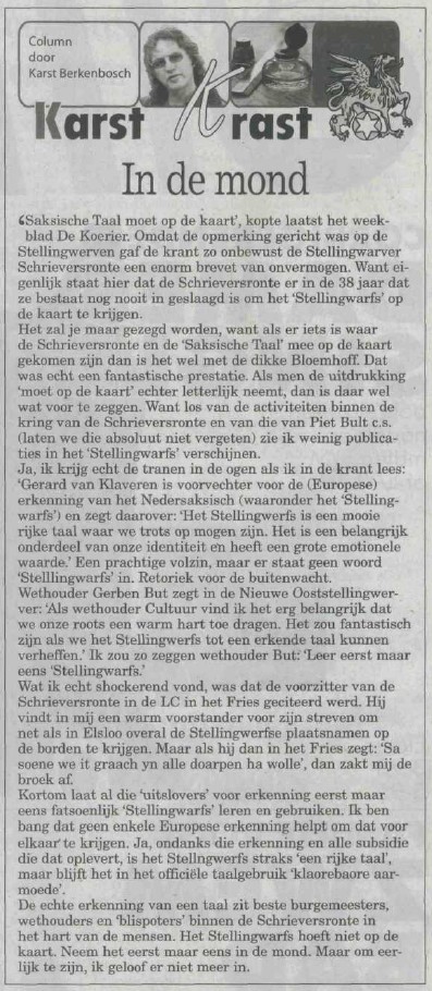 krek as Karst zegt, een anweenst veur et Stellingwarfs, mar et was op