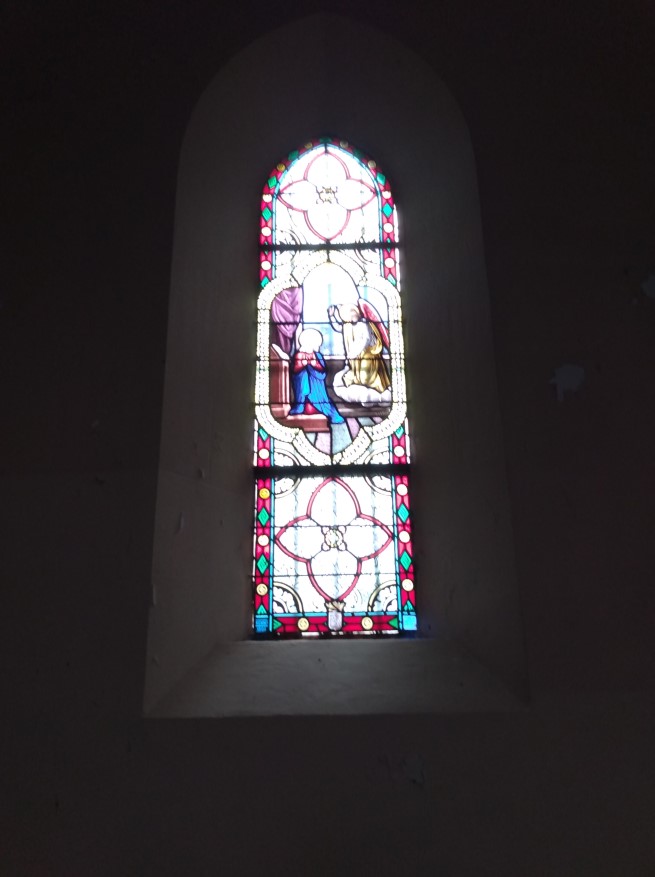 1587. De kerk werd parochiekerk in 1775. De gebrandschilderde ramen